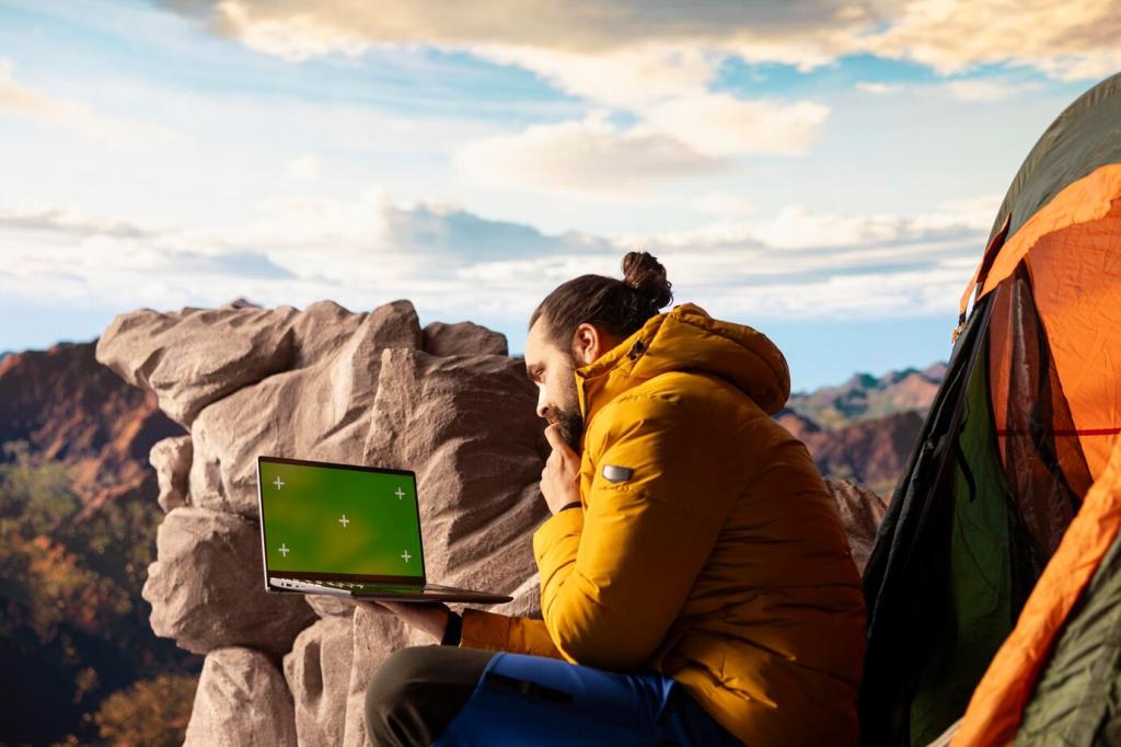 Ohne stabiles Internet und konstante Stromversorgung bleibt jede Aussicht nur ein hübscher Hintergrund. Achte auf Glasfaser, 5G-Abdeckung, Generatoren in Co-Working-Spaces und Hotspot-Backups. Teile deine Erfahrungen zu Speedtests und besten SIM-Karten!